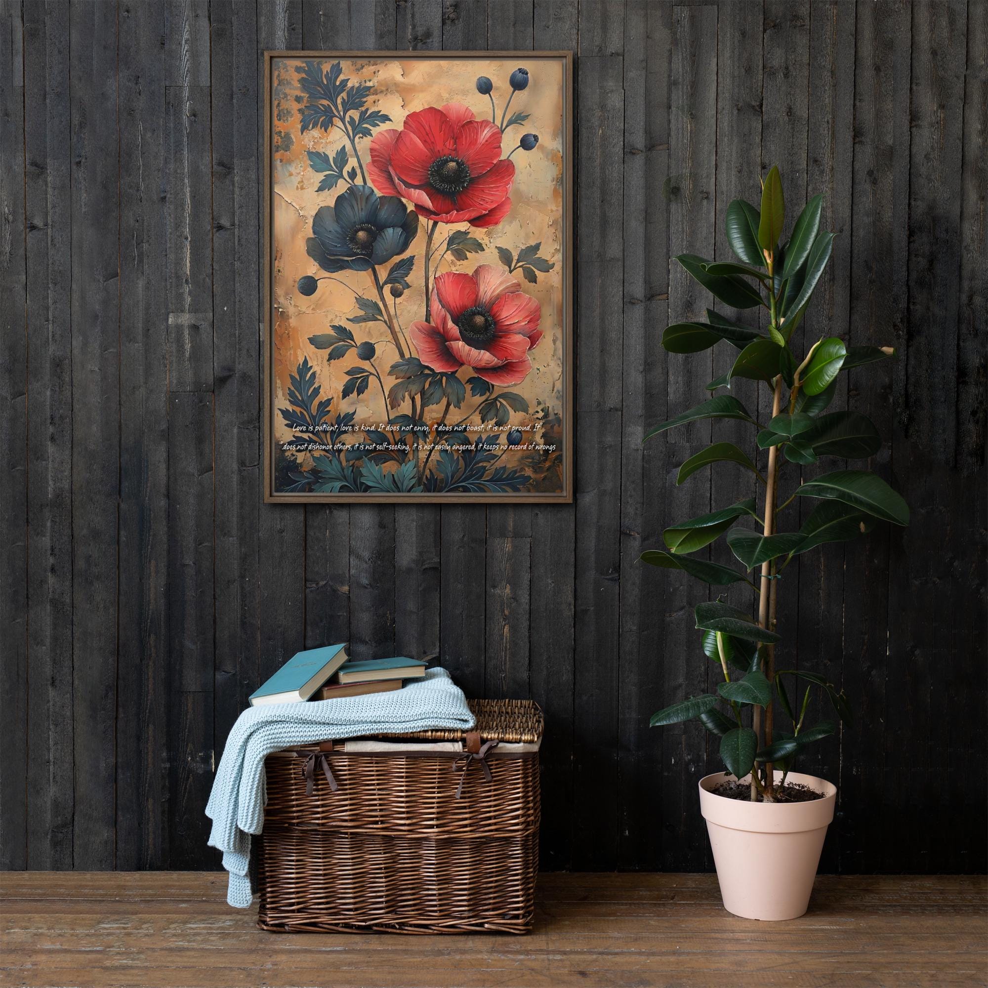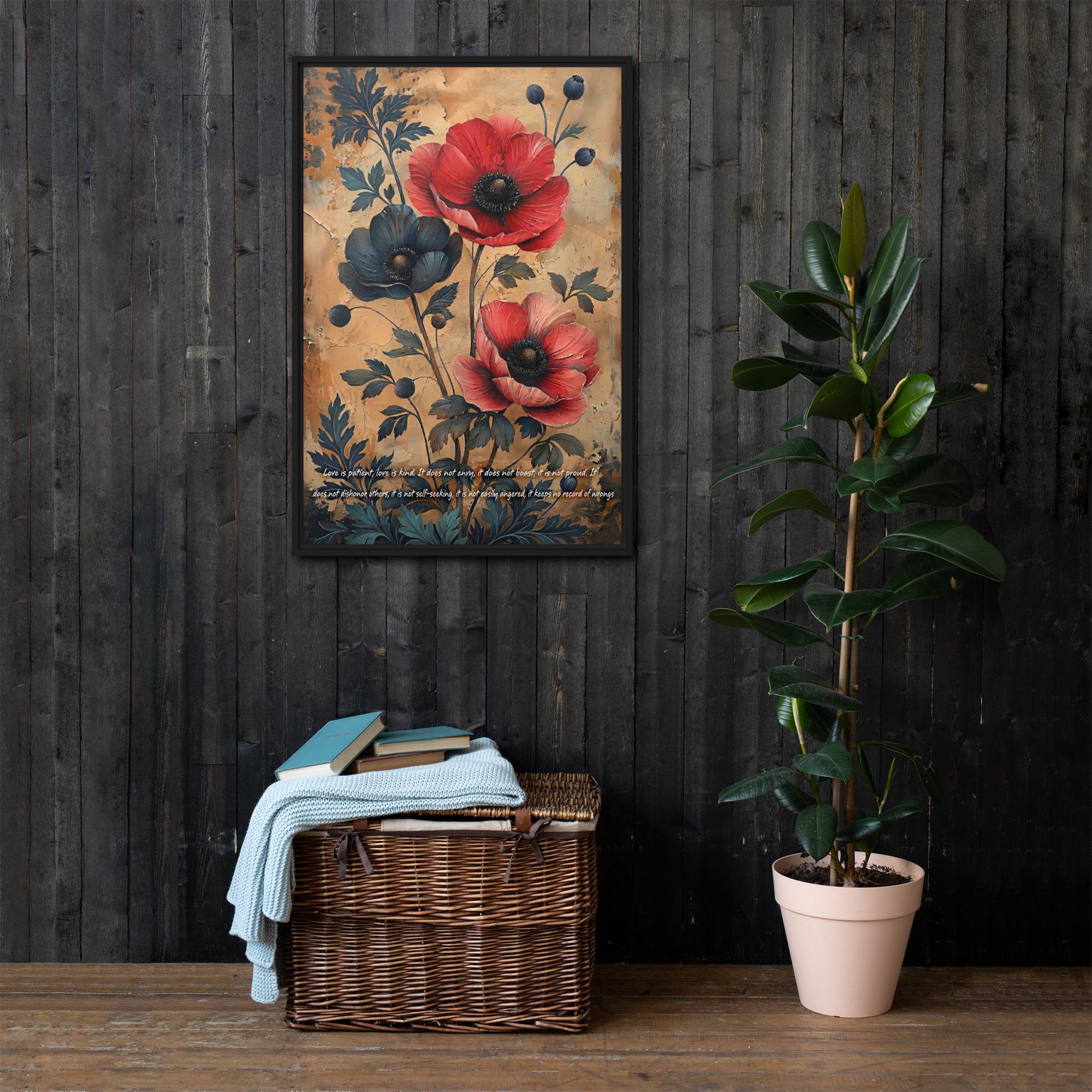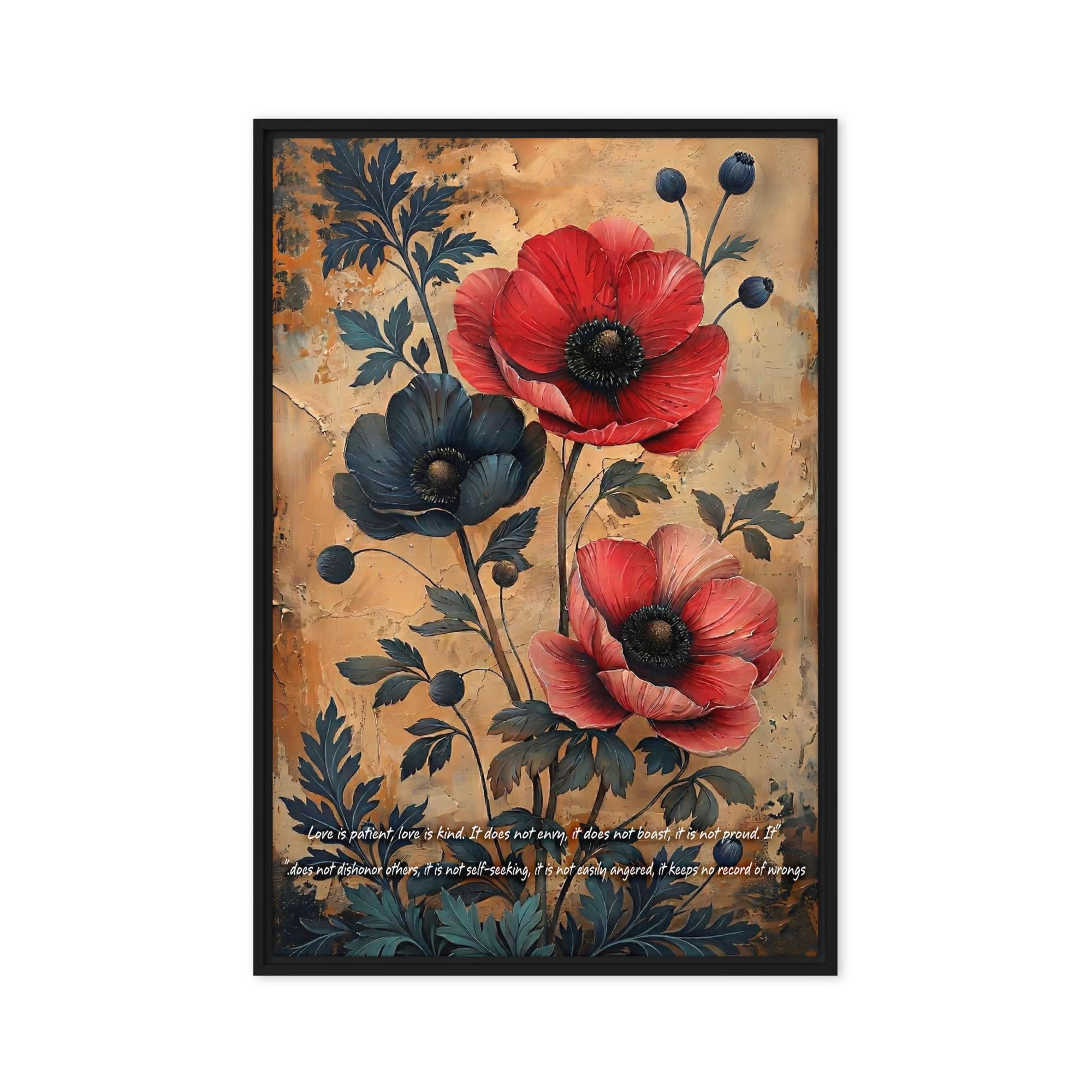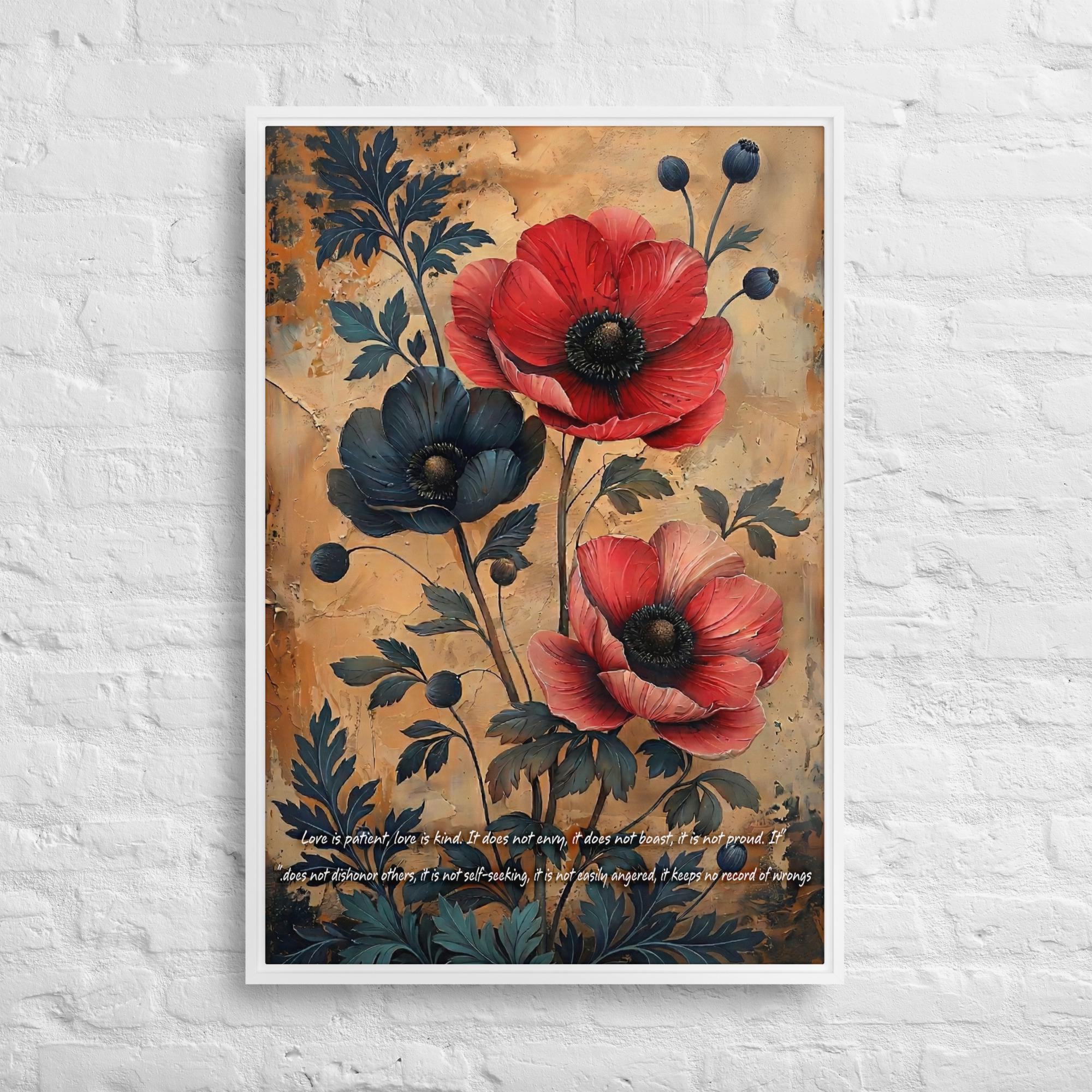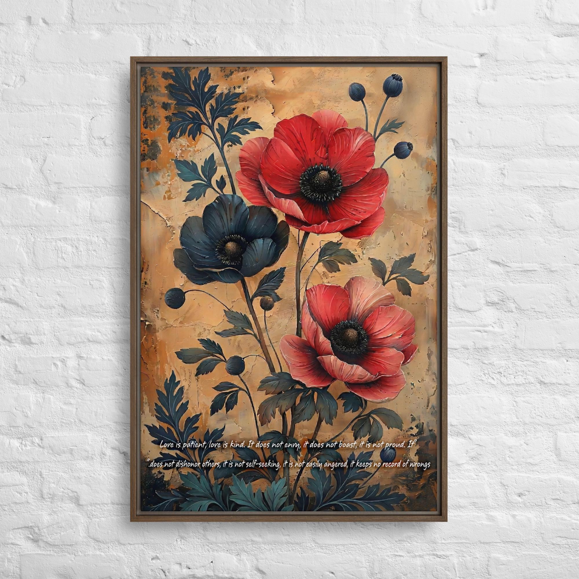 Red Poppies Floral Art, Textured Background, Inspirational Quote