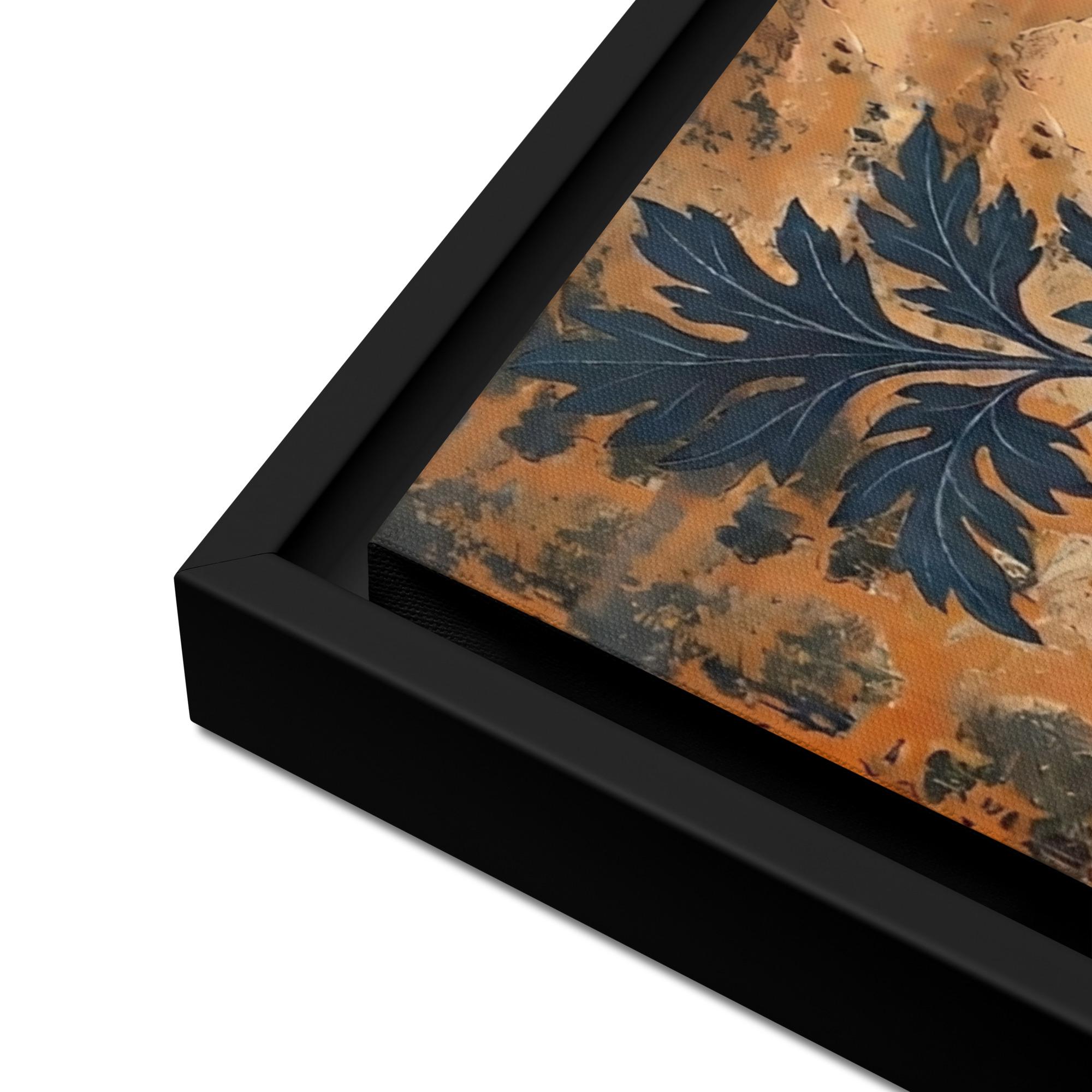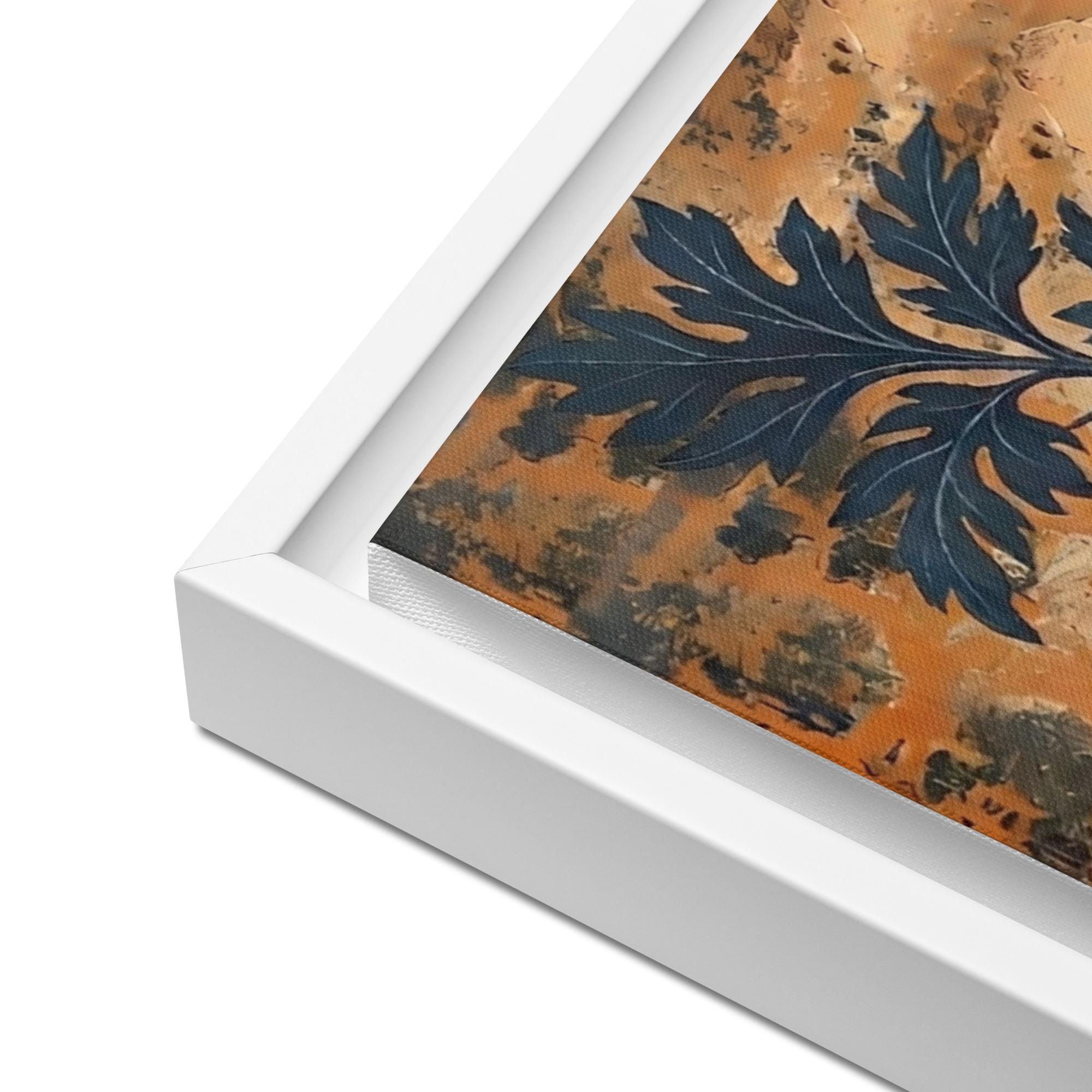 - The framed canvases with brown and black frames have a black inside around the canvas, and the canvases with white frames have a white inside around the canvas.